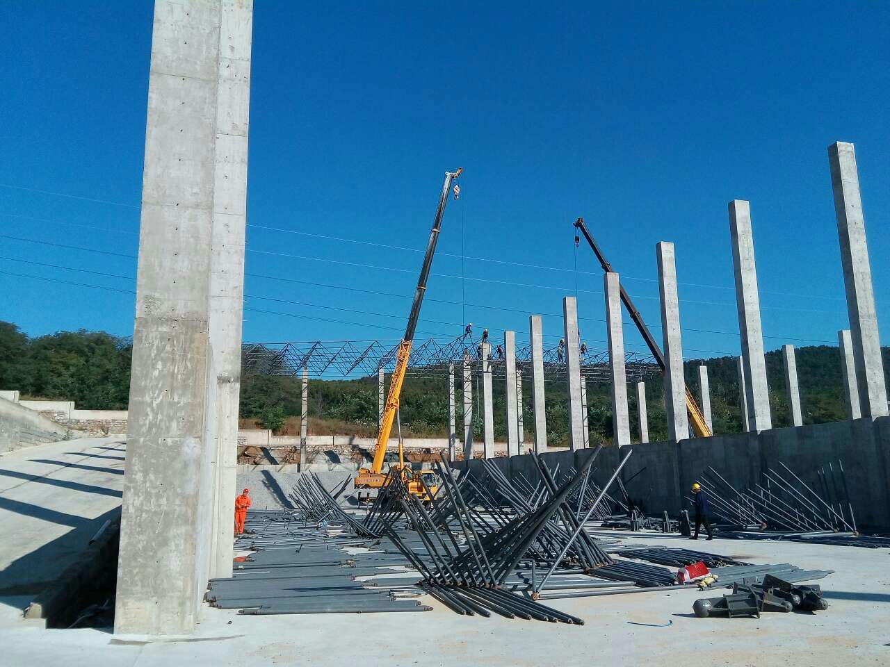 5.网架广州钢结构表面处理:抛丸、喷沙除锈,喷锌、喷铝、喷塑等工艺广州施工!